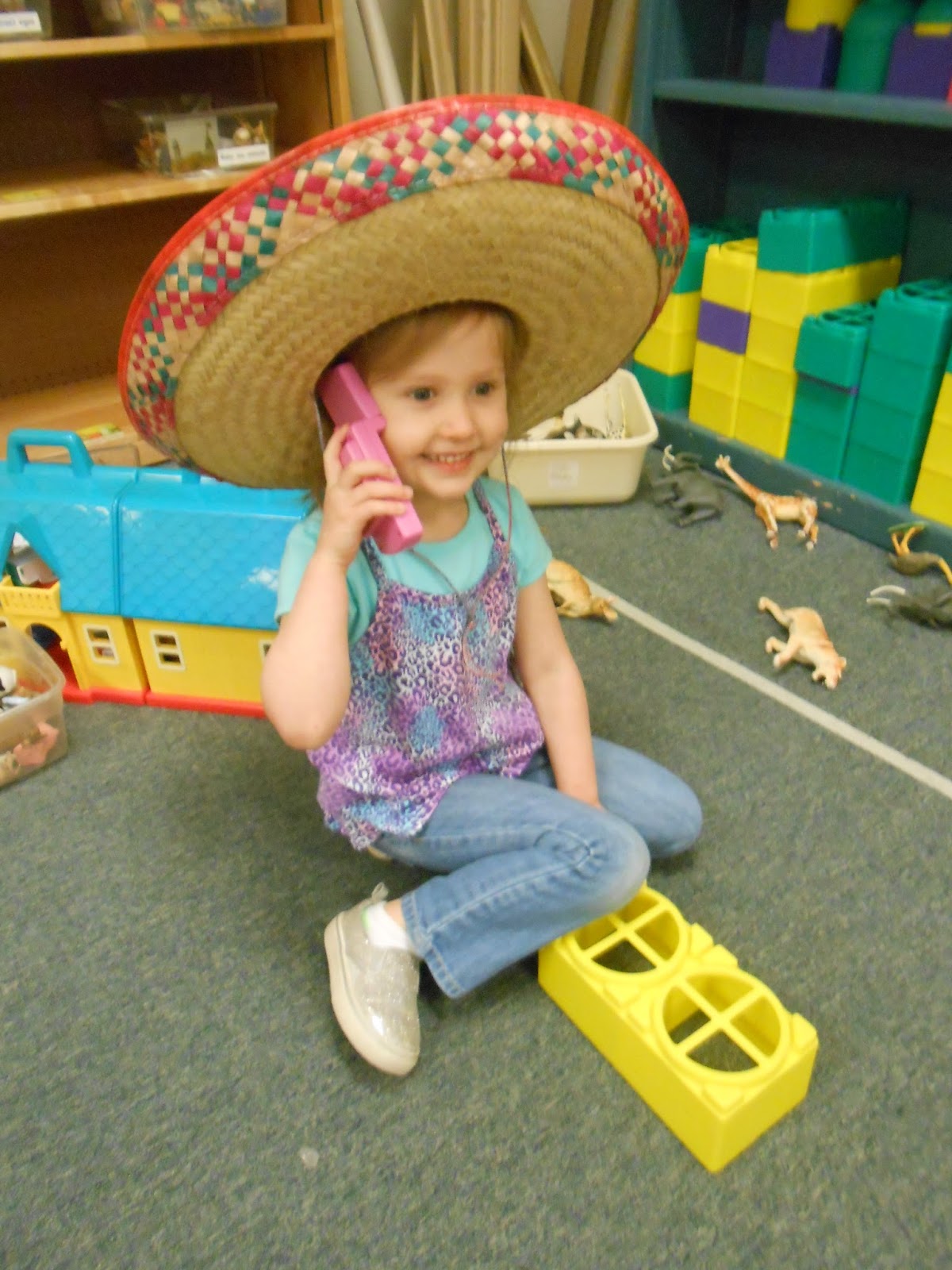 This week there is cornmeal in the sensory table. I try to explain what it is, some children call it corn starch. Today they were making ice cream, cake, etc. Oh, the imagination!